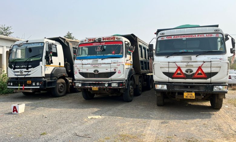 अवैध परिवहन करते पाये जाने पर 10 हाईवा/ट्रेलर जप्त