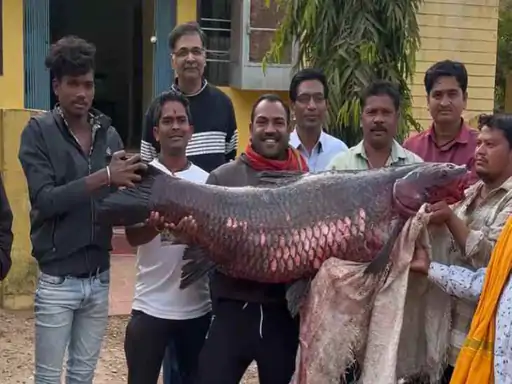 तीन साथियों की मदद से जाल को बाहर निकाला गया। जैसे ही मछुआरों ने उसे बाहर निकाला, तो देखा कि उसमें एक विशाल मछली फंसी हुई है। यह ब्लैक कार्प प्रजाति की मछली है, जिसका शरीर फ्यूसीफॉर्म होता है। वे गहरे भूरे, भूरे या नीले काले रंग के दिखाई देते हैं। उनके पंख गहरे रंग के होते हैं।