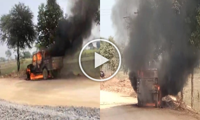 सड़क निर्माण के दौरान Bolero मे लगी भीषण आग, धू-धूकर जलती आई नजर