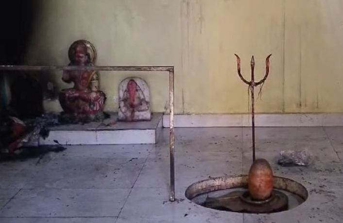 शिव मंदिर में असामाजिक तत्वों ने की आगजनी, मूर्तियों को किया खंडित