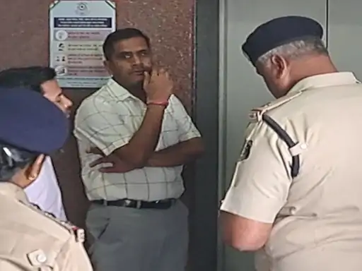 एपी त्रिपाठी को जब कोर्ट में पेश किया गया था उस दौरान की तस्वीर।
