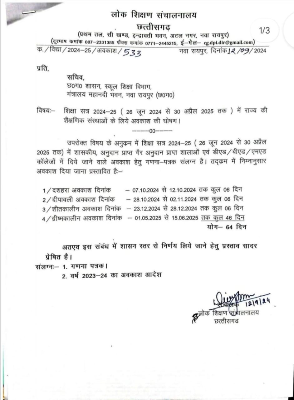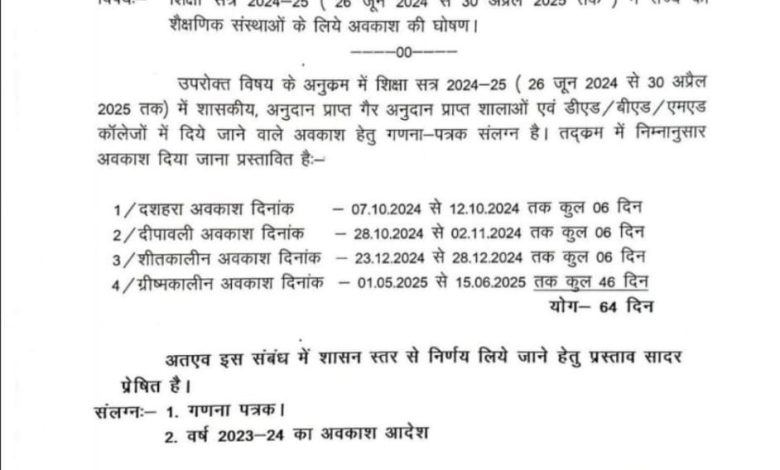 BREAKING: दशहरा दीवाली और शीतकालीन के लिए घोषित की अवकाश, देखें कितने दिन रहेंगे छुट्टी..