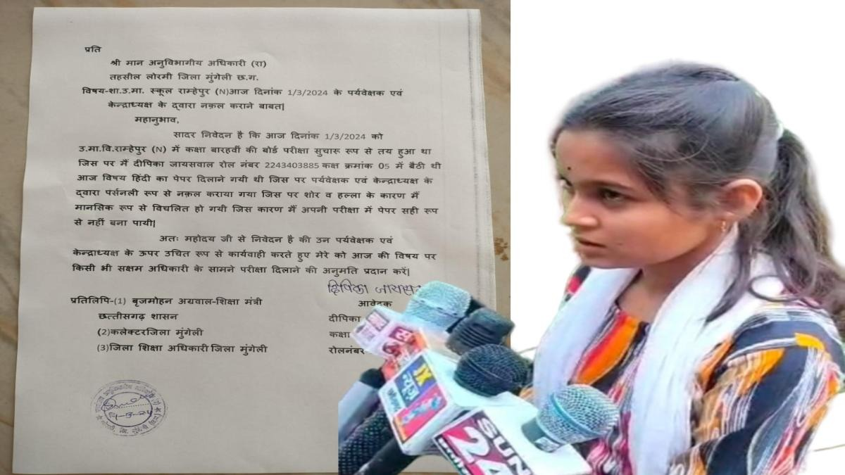 छत्तीसगढ़ : साहसी छात्रा ने केंद्राध्यक्ष और पर्यवेक्षक पर लगाया नकल कराने का गंभीर आरोप, सक्षम अधिकारी के सामने फिर से पेपर देने की रखी मांग