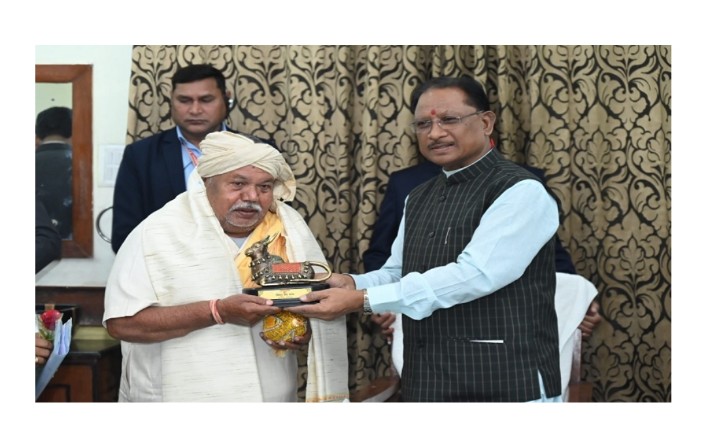 रायपुर। छत्तीसगढ़ के नारायणपुर जिले में रहने वाले वैद्य हेमराज मांझी ने अपना पूरा जीवन इन्हीं जड़ी-बूटियों की खोज की और लगभग पांच दशकों से हजारों लोगों को ठीक किया है। आम जनता की इस अहर्निश सेवा के चलते केंद्र सरकार ने इन्हें पद्मश्री से सम्मानित करने का निर्णय लिया है। आज मुख्यमंत्री विष्णु देव साय ने राज्य अतिथि गृह पहुना में पद्मश्री सम्मानित मांझी का सम्मान किया। मुख्यमंत्री ने कहा कि आपने छत्तीसगढ़ का गौरव पूरे देश में बढ़ाया है। आपने परंपरागत जड़ी-बूटियों के माध्यम से अनेक बीमारियों में लोगों का उपचार किया है। अमेरिका जैसे देशों से भी पेशेंट आपके पास आये हैं। यह ऐसी विद्या है जिसे अगली पीढ़ी तक पहुँचाना है।