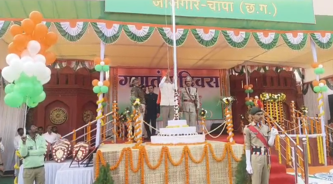 जांजगीर-चांपा में 77वां गणतंत्र दिवस समारोह, वित्त मंत्री ओपी चौधरी ने किया ध्वजारोहण