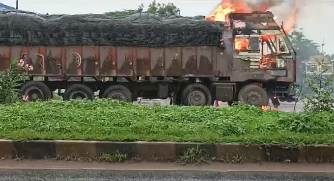 रायपुर से निकली ट्रक में महासमुंद के पास लगी आग, शॉट सर्किट से घटना