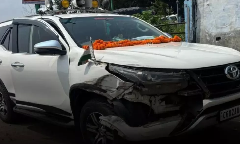 health minister accident रायपुर | 1 अक्टूबर 2025| छत्तीसगढ़ के स्वास्थ्य मंत्री श्याम बिहारी जायसवाल मंगलवार सुबह एक सड़क हादसे में बाल-बाल बच गए। जानकारी के अनुसार, मंत्री की कार एक कार्यक्रम में जाते समय एक तेज रफ्तार ट्रक से टकरा गई। टक्कर इतनी तेज थी कि कार का एक हिस्सा क्षतिग्रस्त हो गया, लेकिन गनीमत रही कि मंत्री को कोई गंभीर चोट नहीं आई।