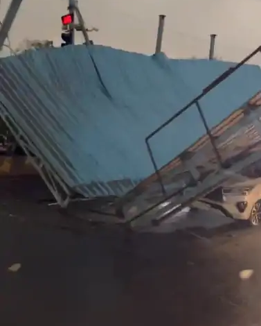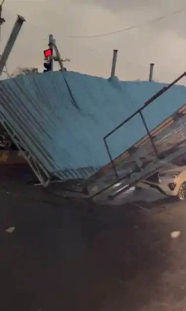 देवेंद्र नगर में आंधी-तूफान से सड़क पर राहगिरों के लिए बना शेड गिर गया। इसमें कई कार भी नीचे दब गई हैं।