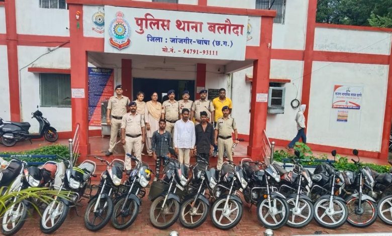 जांजगीर-चांपा: थाना बलौदा पुलिस ने पकड़े शातिर बाइक चोर, 15 मोटरसाइकिल बरामद