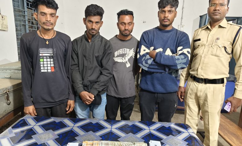 जांजगीर-चांपा: थाना नवागढ़ पुलिस ने जुआ खेलते हुए 4 आरोपियों को किया गिरफ्तार, 14,080 रुपये और 52 पत्ते तास बरामद