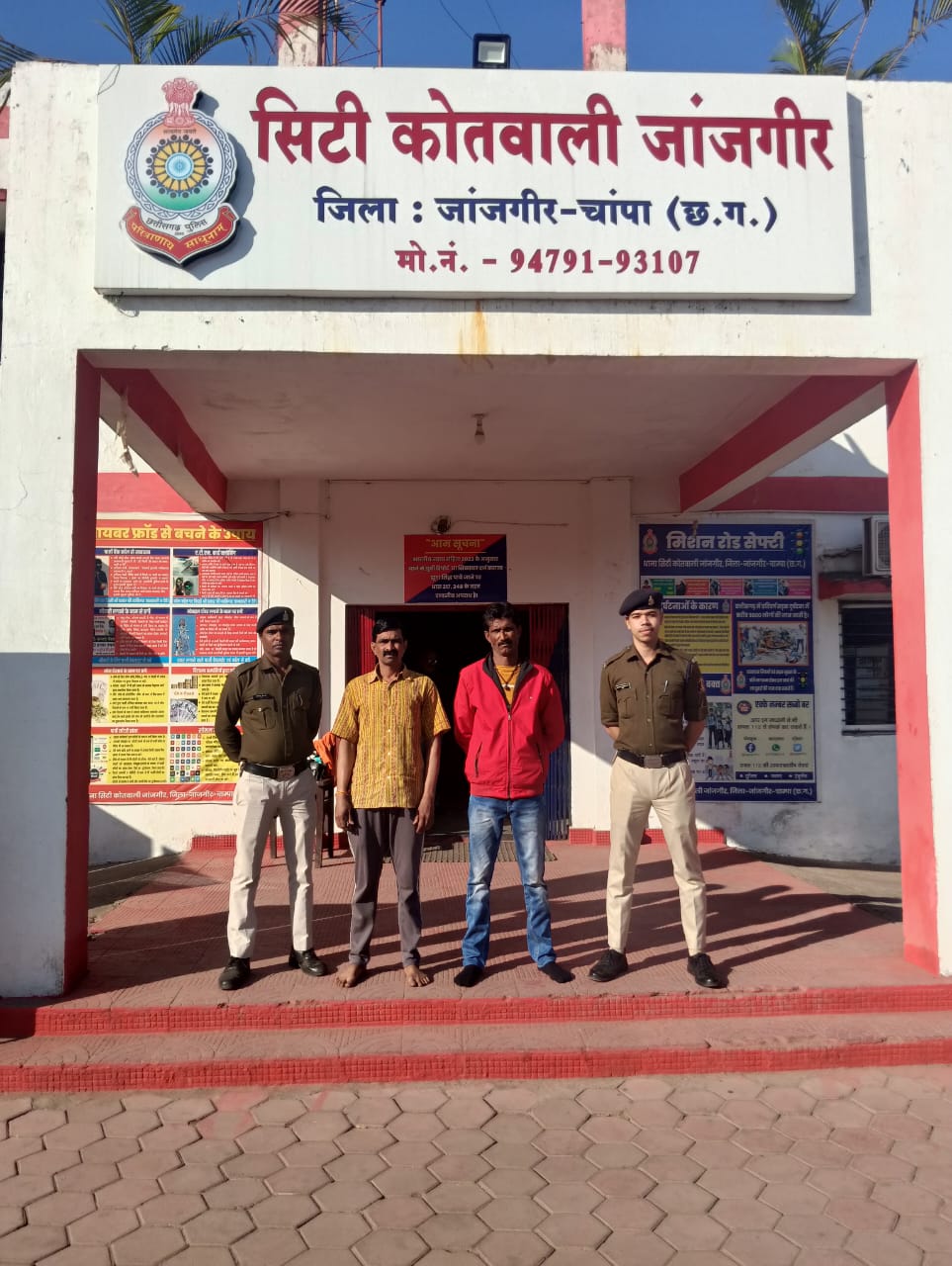थाना प्रभारी निरीक्षक प्रवीण कुमार द्विवेदी के निर्देशन में जांजगीर पुलिस ने बुधवारी बाजार एवं शिव मंदिर के पास आरोपियों नागेश्वर उर्फ नागपाल (निवासी बी डी महंत नगर) और अरुण श्रीवास (निवासी भीमा तलब के पास) को घेराबंदी कर पकड़ा। उनके कब्जे से धारदार हथियार बरामद कर लिया गया।