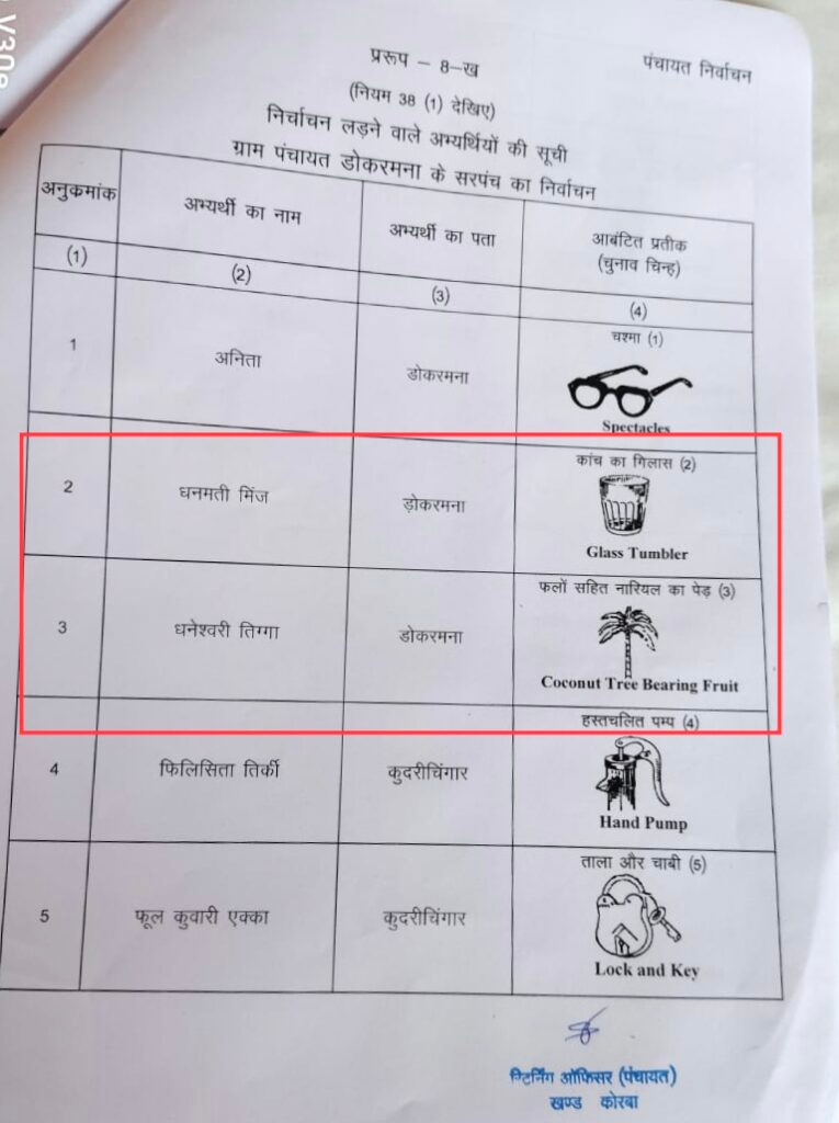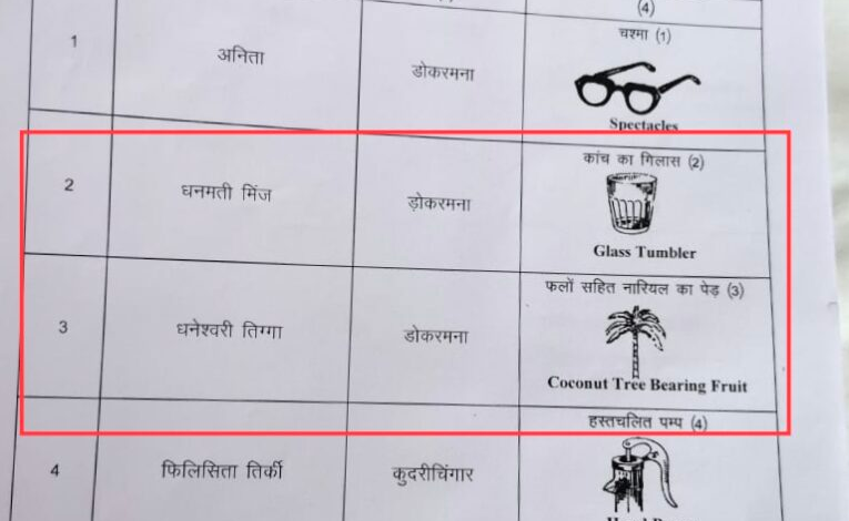 प्राप्त जानकारी के अनुसार, निर्वाचन आयोग द्वारा जारी किए गए आधिकारिक चुनाव चिन्ह और मतदान केंद्र पर चस्पा किए गए मतपत्र के नमूने में अंतर पाया गया है। सरपंच पद की प्रत्याशी धनमती और धनेश्वरी के चुनाव चिन्ह आपस में बदल गए, जिससे मतदाताओं में भ्रम की स्थिति पैदा हो गई।