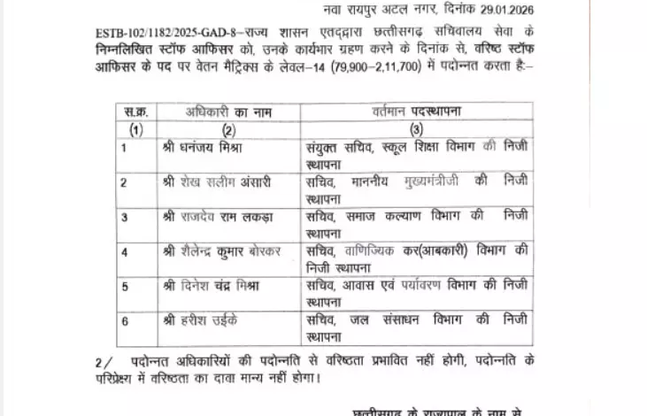 मंत्रालय संवर्ग में बड़ा फेरबदल, आधा दर्जन स्टाफ ऑफिसर वरिष्ठ पद पर पदस्थ