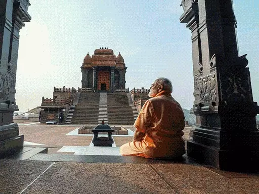 आज की तस्वीरों में मोदी रुद्राक्ष की माला जपते, ध्यान मंडपम के कॉरिडोर में बैठे और स्वामी विवेकानंद की प्रतिमा को नमन करते दिखाई दिए।