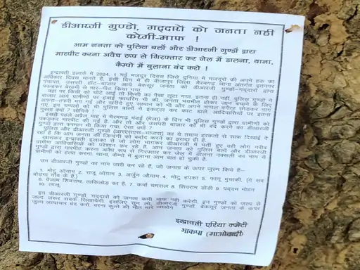 इसके अलावा पर्चे में DRG के 10 जवानों का नाम लिखकर उन पर ग्रामीणों की पिटाई का आरोप लगाया है। उन्हें जल्द सजा देने की बाद लिखी हुई है।