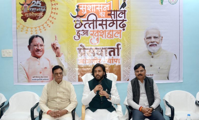 उपाध्यक्ष अ.जा.प्राधि. श्री गुरु खुशवंत साहेब ने सरकार के एक वर्ष पूर्ण होने के अवसर पर प्रेस को संबोधित करते हुए कहा कि 13 दिसम्बर को हमारी सरकार का पहला साल पूरा हो रहा है। हमारा यह पहला साल आप सभी की सहभागिता और विश्वास के साथ विकास के लिए समर्पित रहा। मुख्यमंत्री श्री विष्णुदेव साय के नेतृत्व में बीते 12 माह में छत्तीसगढ़ प्रदेश ने विकास के नये आयाम स्थापित किए हैं। विकसित भारत के निर्माण के लिए विकसित छत्तीसगढ़ के निर्माण के अपने संकल्प को पूरा करने की दिशा में हम सफलता के साथ लगातार आगे बढ़े हैं। इस दौरान छत्तीसगढ़ सरकार ने प्रदेश के सभी वर्गों के कल्याण के लिए काम किया और उपलब्धियां हासिल की, हमारी प्राथमिकता में वे लोग रहे जो सामाजिक और आर्थिक रूप से पिछड़े हुए हैं।