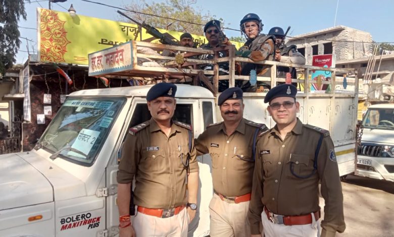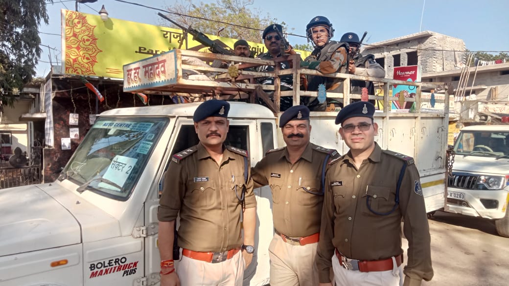 जांजगीर-चांपा में पुलिस का भव्य फ्लैग मार्च, चुनावी माहौल में सुरक्षा का भरोसा