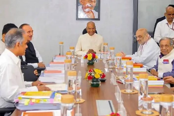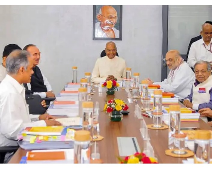 इस समिति में पूर्व राष्ट्रपति रामनाथ कोविंद, गृहमंत्री अमित शाह, राज्यसभा में विपक्ष के पूर्व नेता गुलाम नबी आजाद, 15वें वित्त आयोग के अध्यक्ष एनके सिंह, पूर्व लोकसभा महासचिव सुभाष सी कश्यप और पूर्व चीफ विजिलेंस कमिश्नर संजय कोठारी शामिल हैं। कानून मंत्री अर्जुन राम मेघवाल इस समीति के विशेष आमंत्रित सदस्य और कानून सचिव नितिन चंद्रा सचिव हैं.