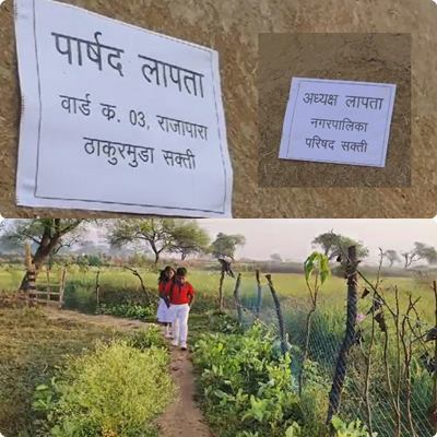 सक्ती. छत्तीसगढ़ के सक्ति जिले के नगर पालिका के वार्ड नंबर 3 के नगर पालिका अध्यक्ष और पार्षद, दोनों लापता हो गए हैं. ऐसा हम नहीं वार्ड वासियों कहना है. दरअसल, इस गांव में अब तक बुनियादी सुविधाएं नहीं पहुंच सकी हैं. इसे लेकर ग्रामीणों में भारी आक्रोश देखा जा रहा है. गली-कूचे और वार्ड की सभी दीवारों पर ग्रामीणों ने पार्षद और अध्यक्ष के लापता पोस्टर लगा कर विरोध प्रदर्शन किया है.बता दें, इस गांव को बसे 80 साल हो चुके हैं, लेकिन जिम्मेदारों ने अब तक वार्ड में सड़क नहीं बनवाई, जिसके चलते रहवासियों को भारी समस्याओं का सामना करना पड़ता है. आज के समय में भी वहां के रहवासी खेतों और पगडंडियों से होकर आना जाना करते हैं. वहीं बरसात में सभी को कीचड़ से होकर जाना पड़ता है. स्कूल जाते वक्त बच्चों के कपड़े और जूते गंदे हो जाते हैं. सड़क मांग को लेकर अब ग्रामीणों ने पार्षद और नगर पालिका के अध्यक्ष के खिलाफ मोर्चा खोल दिया है.लोगों का कहना है कि ग्रामीण शासन और प्रशासन से वर्षों से सड़क बनाने की गुहार लगा रहे है, लेकिन कोई सुनवाई नहीं हो रही है. बरसात के मौसम में कीचड़ से होकर निकलना पड़ता है, जिससे यात्रियों को भारी मुश्किलों का सामना करना पड़ता है. इस सड़क समस्या के कारण कई बार लोग इलाज के लिए अस्पताल नहीं पहुंच पाते, जिसके चलते कई मौतें भी हो चुकी हैं. वार्डवासी अब जनप्रतिनिधियों से सड़क की मांग को लेकर सख्त कदम उठाने के लिए मजबूर हो गए हैं.