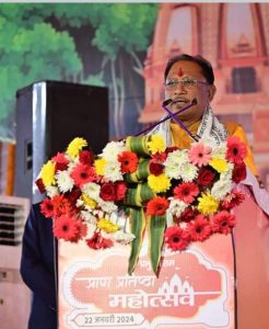 मुख्यमंत्री ने कहा कि हम सभी बहुत सौभाग्यशाली हैं कि हमने श्री रामलला की प्राणप्रतिष्ठा कार्यक्रम की संपूर्ण प्रक्रिया को विस्तार से देखा। भगवान श्रीराम की अलौकिक बाल प्रतिमा का दर्शन हुआ। हम सब अभिभूत हुए। यह खुशी का क्षण इसलिए भी है कि हमने यह सब माता शबरी के पवित्र धाम शिवरीनारायण की पावन भूमि में देखा। एक पावन भूमि में हमने एक और पवित्र भूमि में होने वाले अद्भुत प्राण प्रतिष्ठा समारोह को देखा।