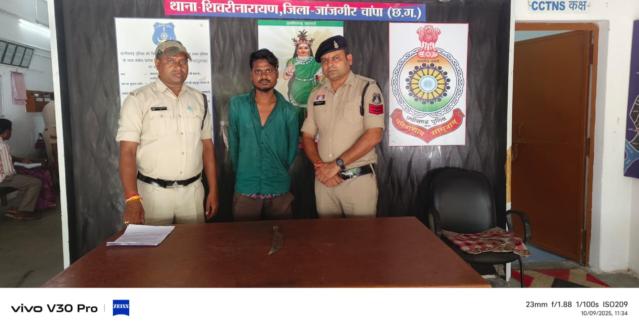 शिवरीनारायण पुलिस की सख्त कार्रवाई: धारदार हथियार लहराने वाला युवक गिरफ्तार