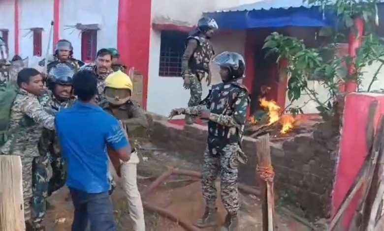 विरोध के दौरान ग्रामीण और पुलिसकर्मी हुए घायल