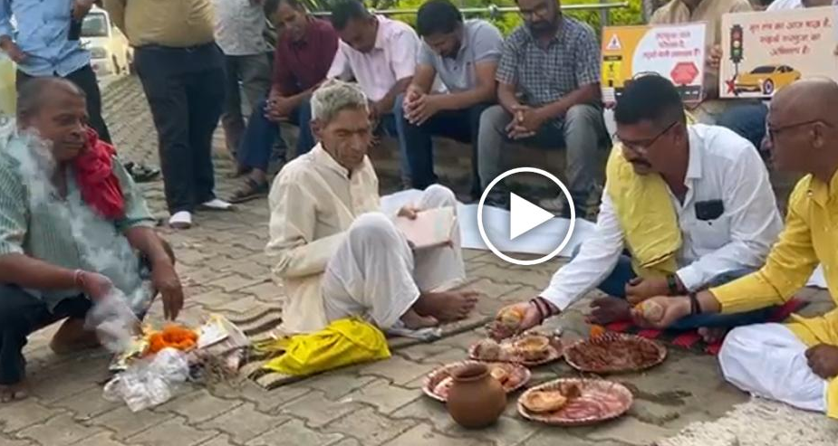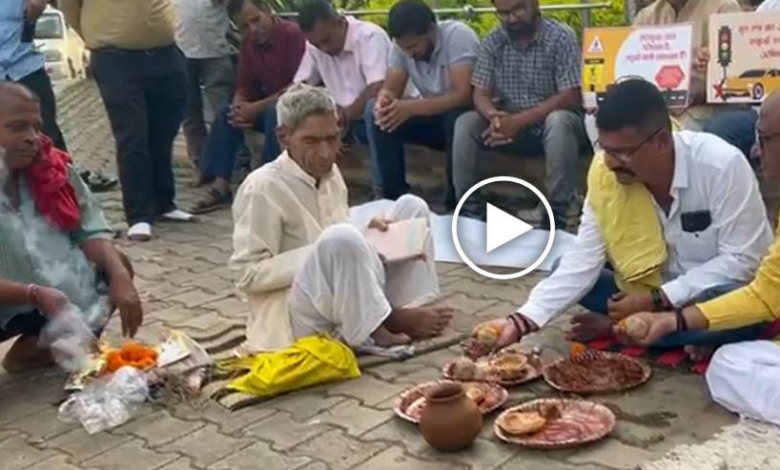 बदहाल सड़कों से परेशान लोगों का फूटा गुस्सा, विधि-विधान से किया सिस्टम का श्राद्ध