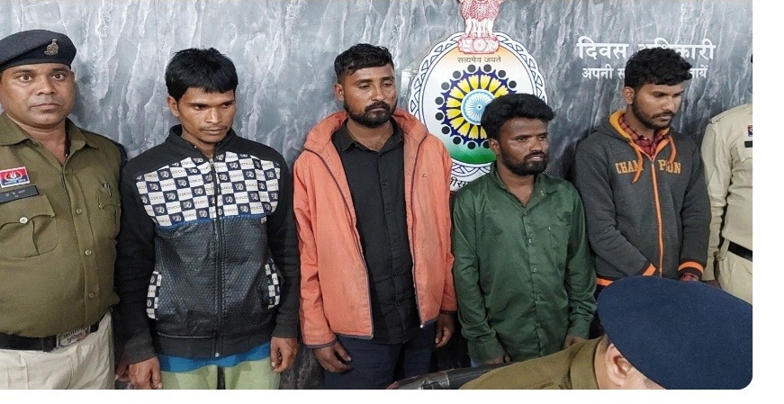 वर्दी का खेल हुआ फ़ेल — फर्जी आबकारी पुलिस बनकर वसूली कर रहे चार युवक सलाखों के पीछे वर्दी, मोबाइल और बाइक सब जप्त