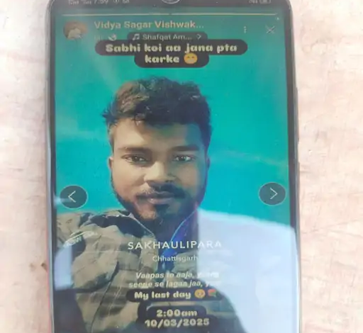 सरगुजा। जिले के दरिमा थाना क्षेत्र में एक युवक ने फांसी लगाकर आत्महत्या कर ली। आत्महत्या से पहले युवक ने सोशल मीडिया पर स्टेटस पोस्ट किया, जिसमें लिखा था – “माई लास्ट डे, सब कोई पता कर के आ जाना। अब तो आ जा यार-सीने से लगा जा यार।” इस मामले को प्रेम-प्रसंग से जोड़कर देखा जा रहा है।