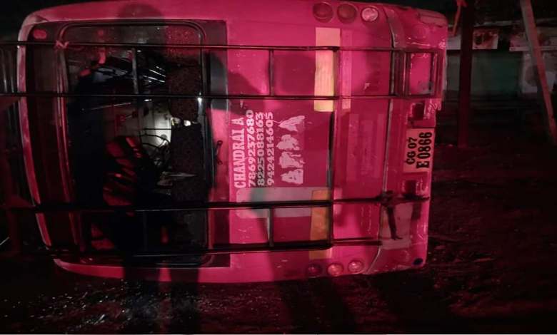 बलौदाबाजार. देर रात ग्राम सकरी में बारातियों से भरी बस पलटने से चीख पुकार मची रही. इस हादसे में दस लोग घायल हुए हैं. वहीं दो गंभीर हैं, जिन्हें रायपुर रेफर किया गया है. घटना होते ही बस में सवार लोगों सहित ग्रामीणों की मदद से सभी को गाड़ी का कांच तोड़कर बाहर निकाला गया. वहीं घायलों को तत्काल जिला चिकित्सालय भेजा गया, जहां मामूली चोट के चलते बाकी को छुट्टी दी गई एवं दो को जिला चिकित्सालय में भर्ती किया गया है. वहीं दो घायलों को रायपुर रेफर घटना के प्रत्यक्षदर्शी परिवार के सदस्य लोकेन्द्र साहू ने बताया कि हम लोग रायपुर चंगोराभाठा से ग्राम भद्रापाली बलौदाबाजार चौथिया कार्यक्रम में आये थे और वापस जा रहे थे. इसी बीच ग्राम सकरी में बस पलट गई, जिसमें आठ से दस लोग घायल हैं. दो को रायपुर रेफर किया गया है और दो का जिला चिकित्सालय में ईलाज चल रहा है. फिलहाल कोई भी जनहानि नहीं हुई है. परिवार के लोग सुरक्षित हैं.