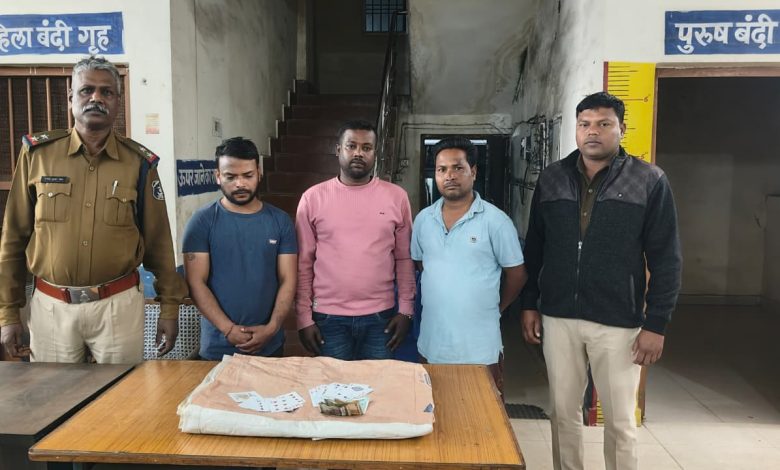 बलौदा थाना क्षेत्र में जुआ खेलते तीन आरोपी गिरफ्तार, नकदी व ताश जब्त
